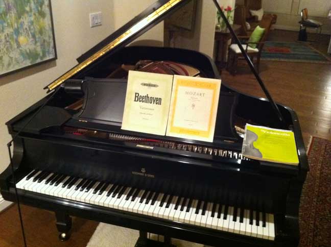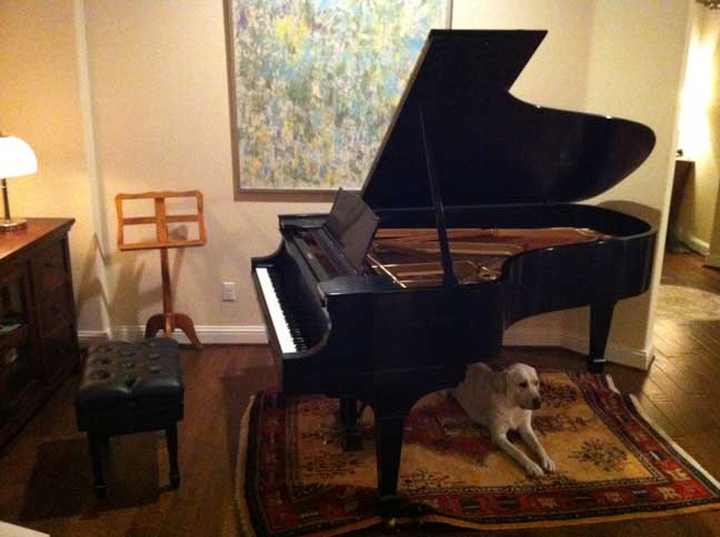 This is my wonderful 1922 Steinway Model 'B' Concert Grand Piano (6'11"). The action was reconditioned and replaced in the 1990's before I owned it, but the piano still has the original soundboard, frame, case and ivory keys. We have had it in our house since 2011 and it is a beautiful instrument - all the recordings on this page were made on this piano using Neumann mics - a pair of KM184's and a U87Ai.